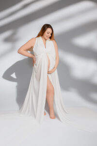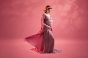 Photos en robe de grossesse, drapés ou effets créatifs comme des voiles flottants