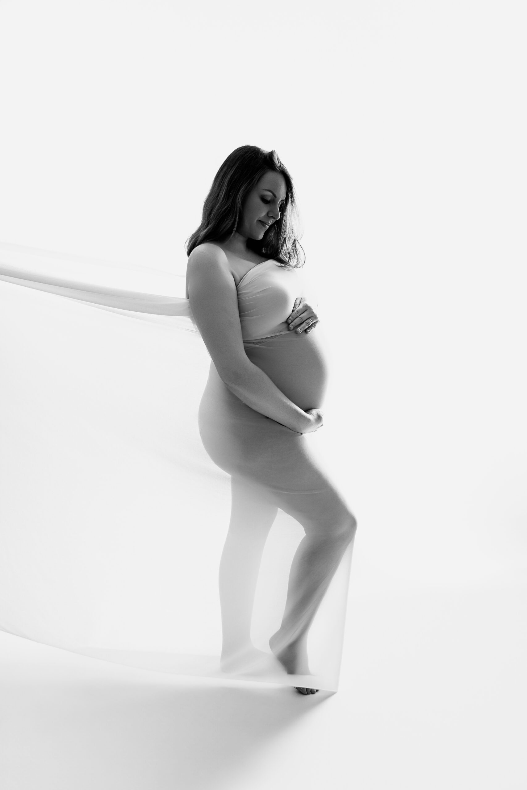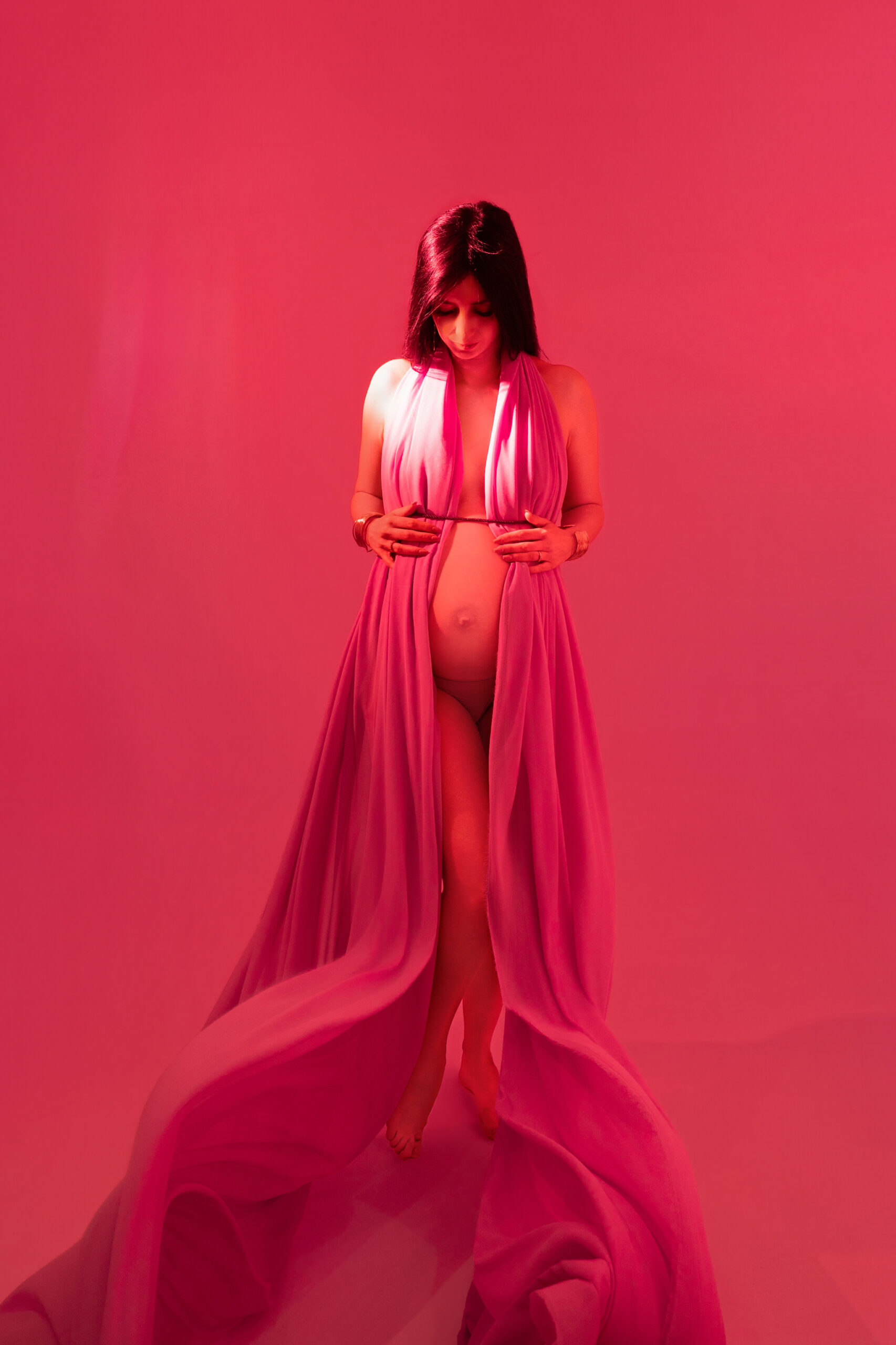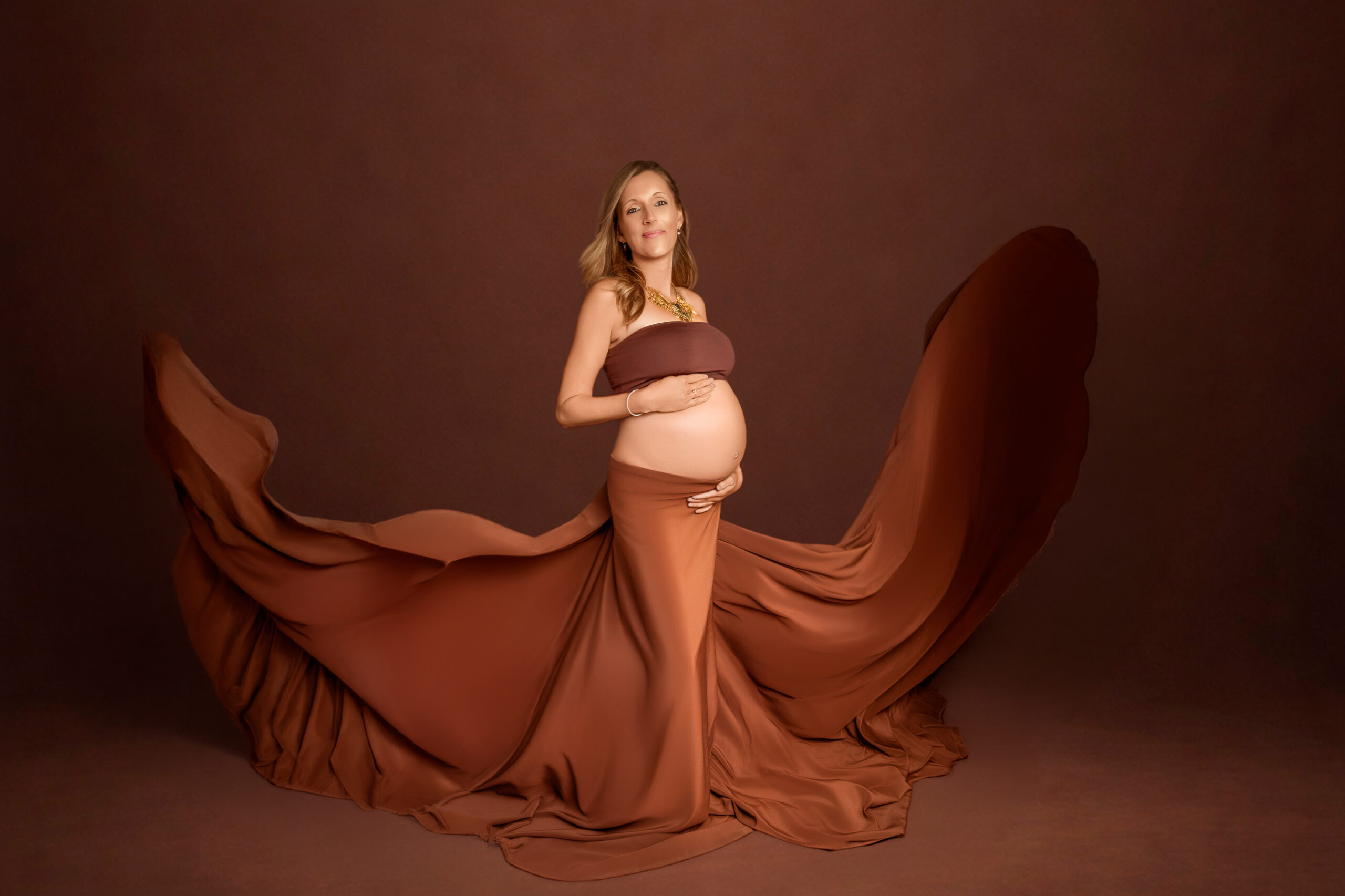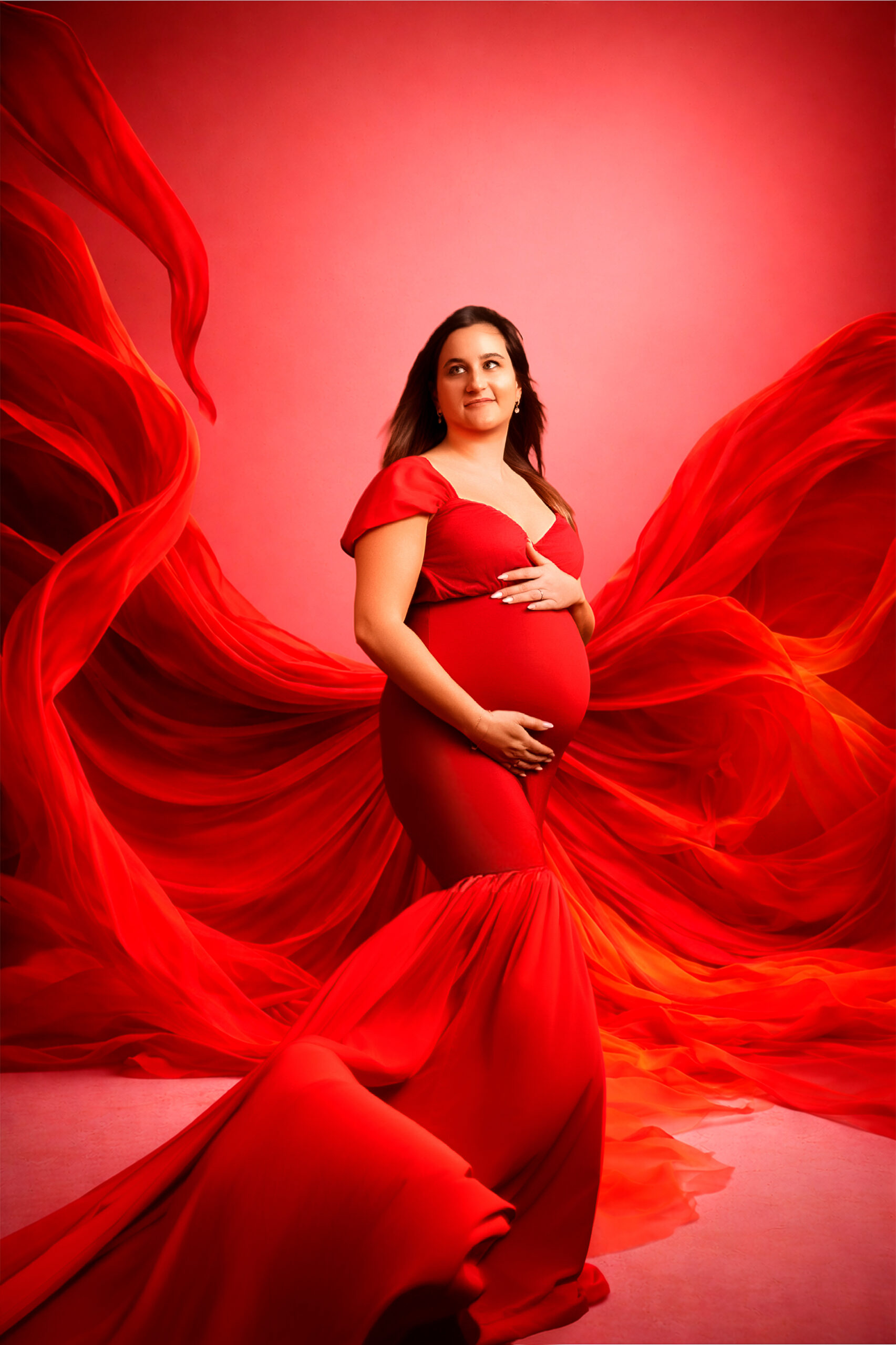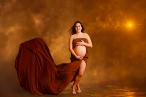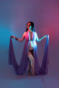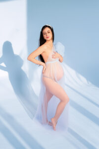Photos en robe de grossesse, drapés ou effets créatifs comme des voiles flottants