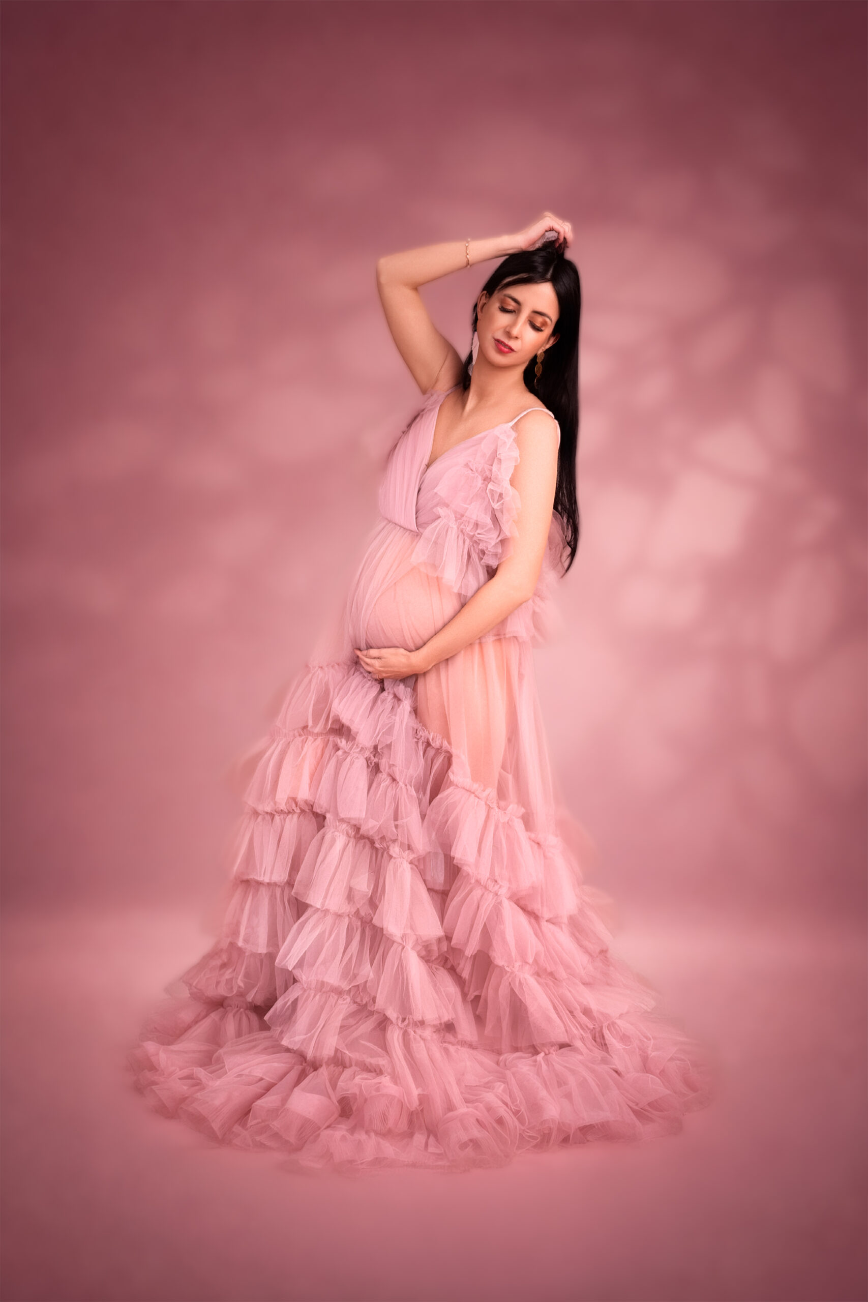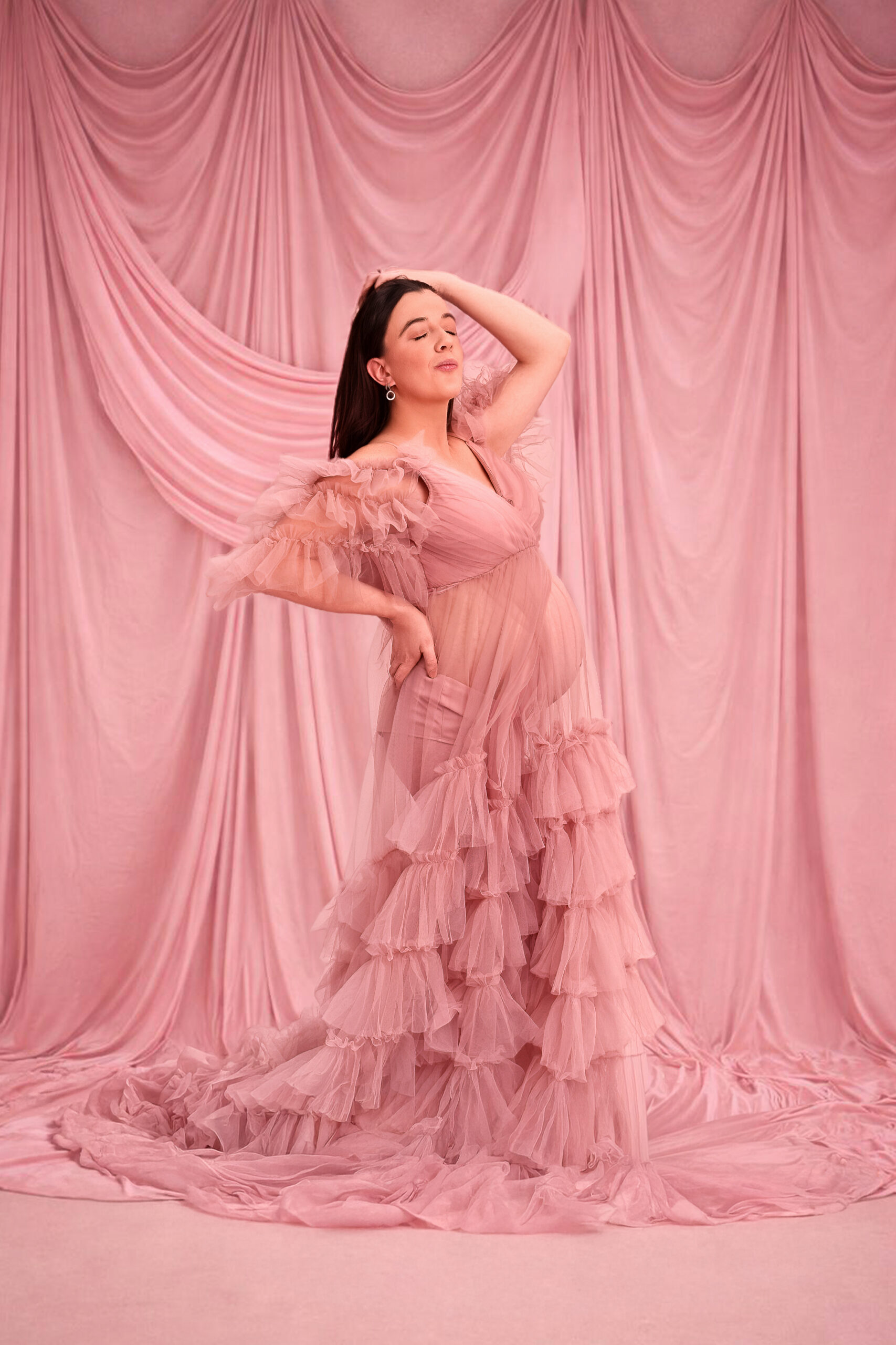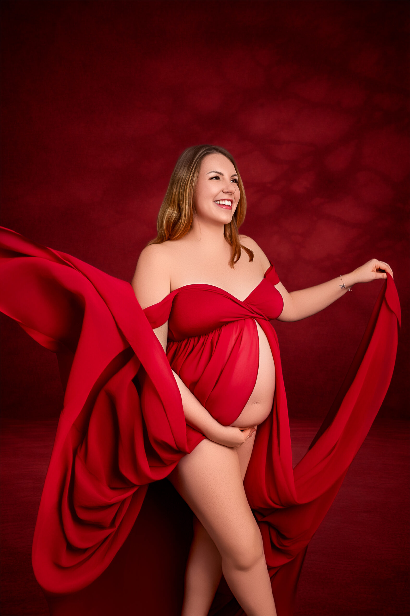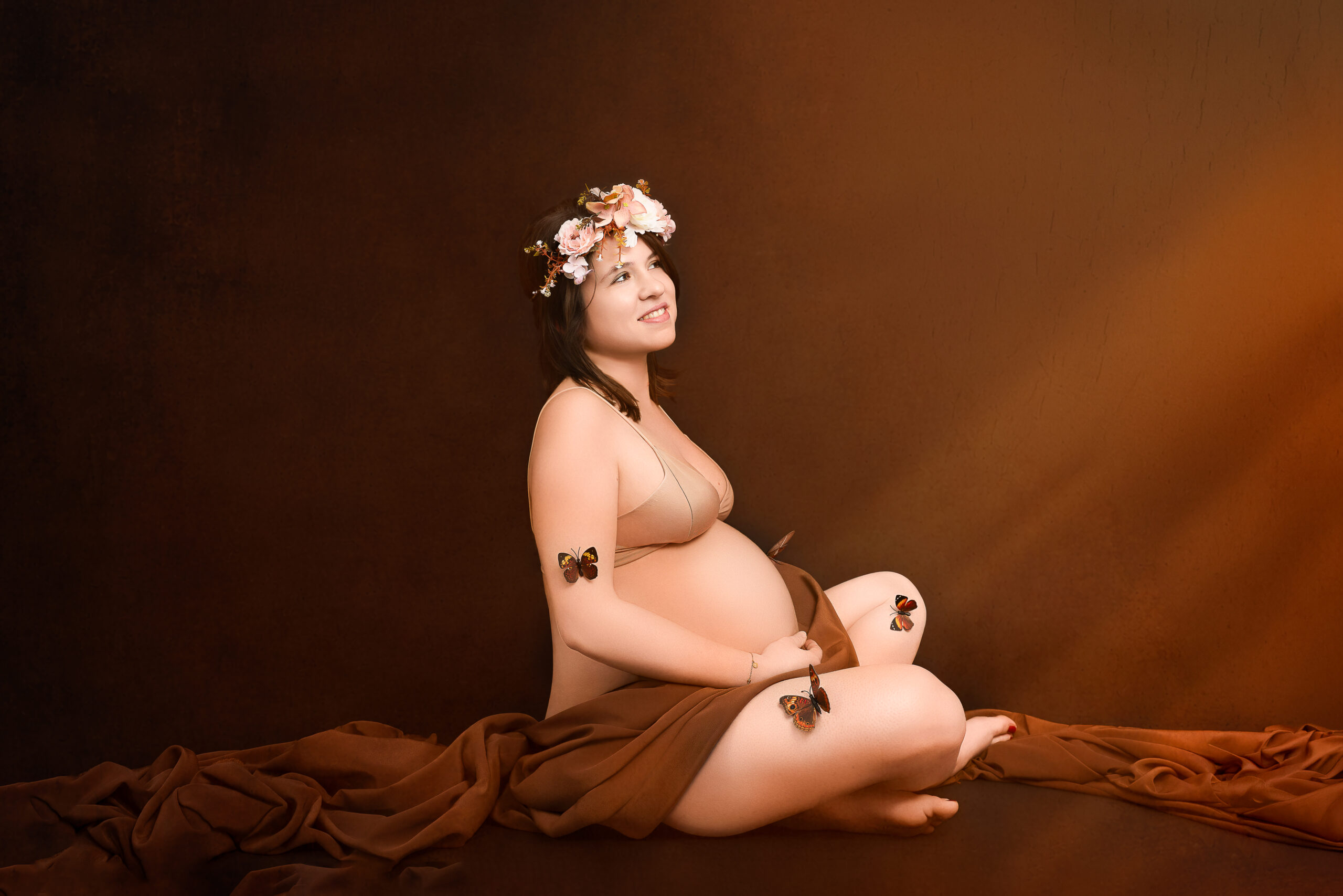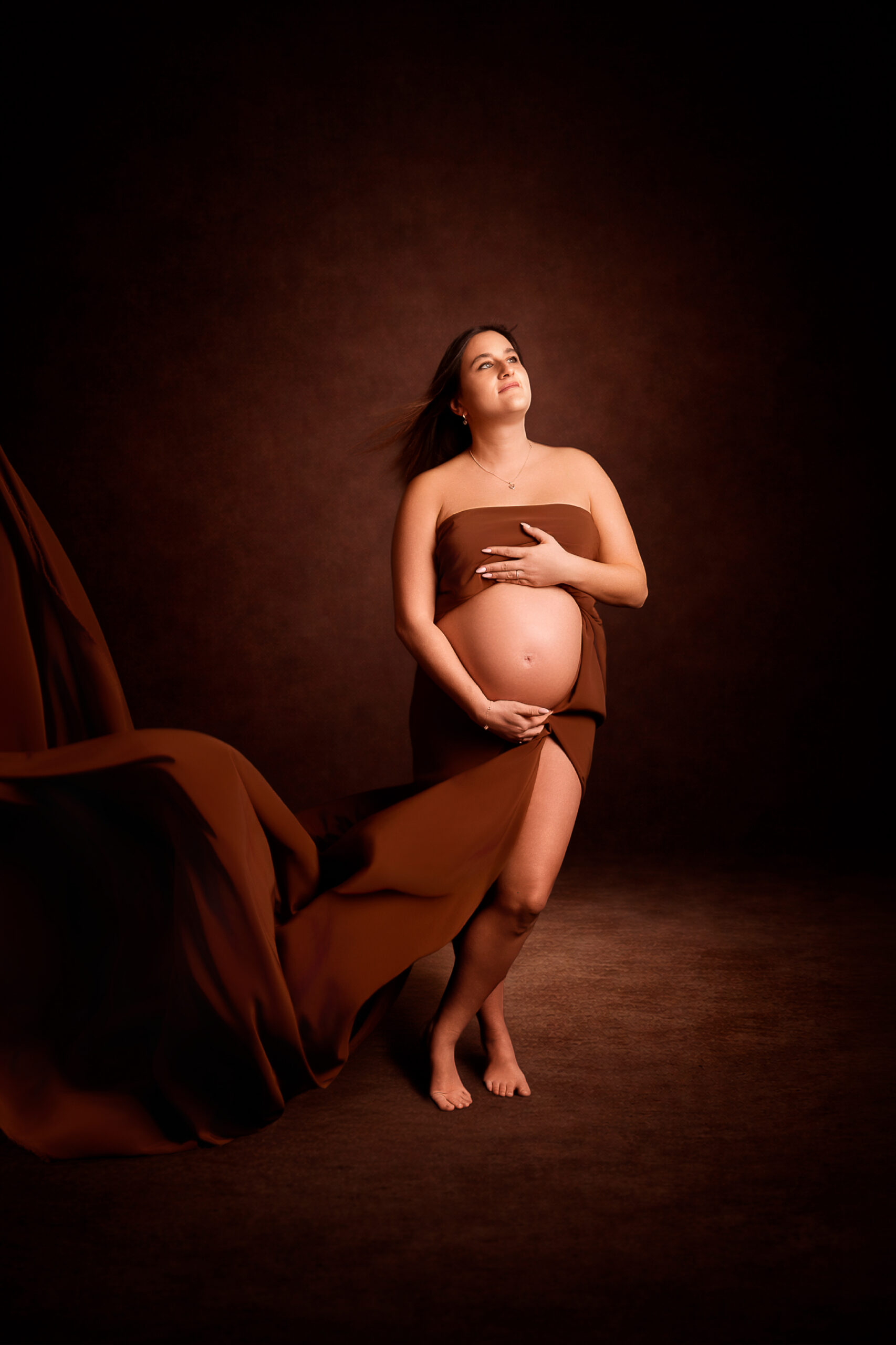 Photos en robe de grossesse, drapés ou effets créatifs comme des voiles flottants