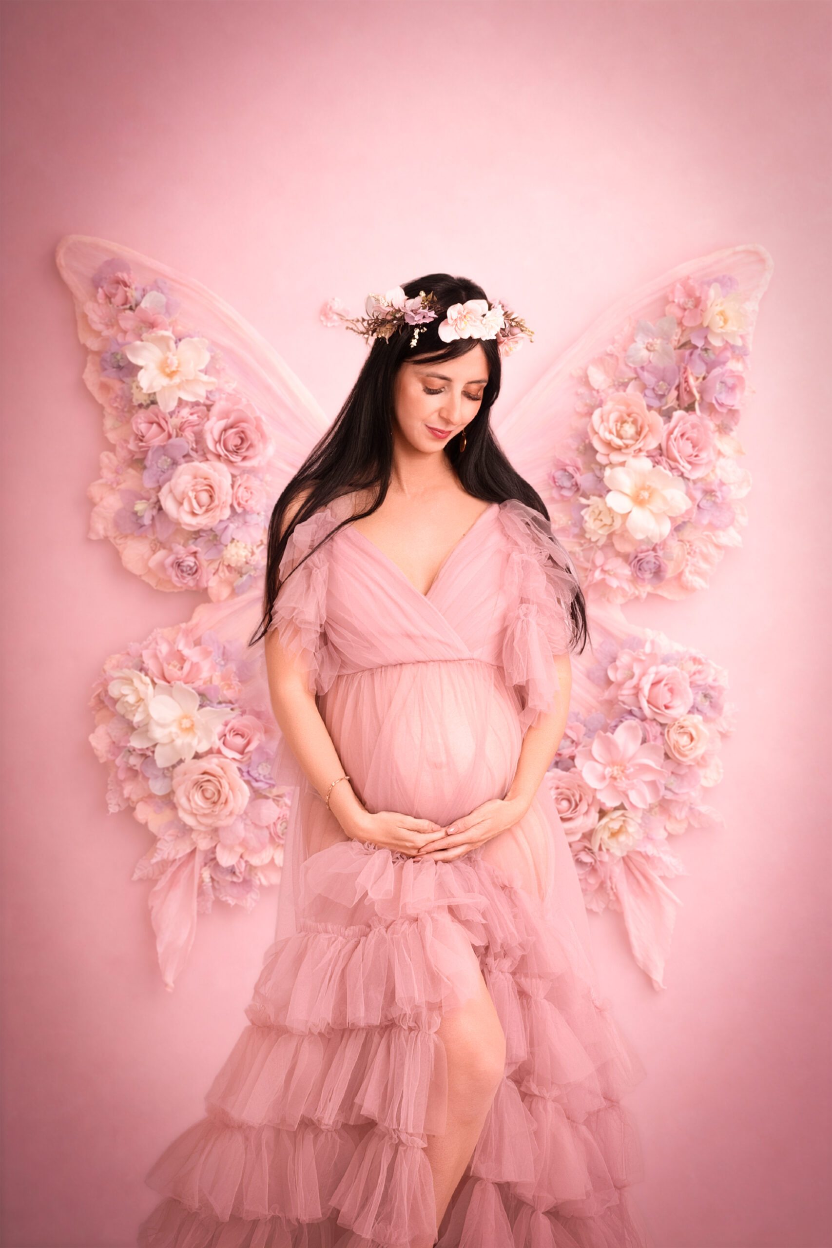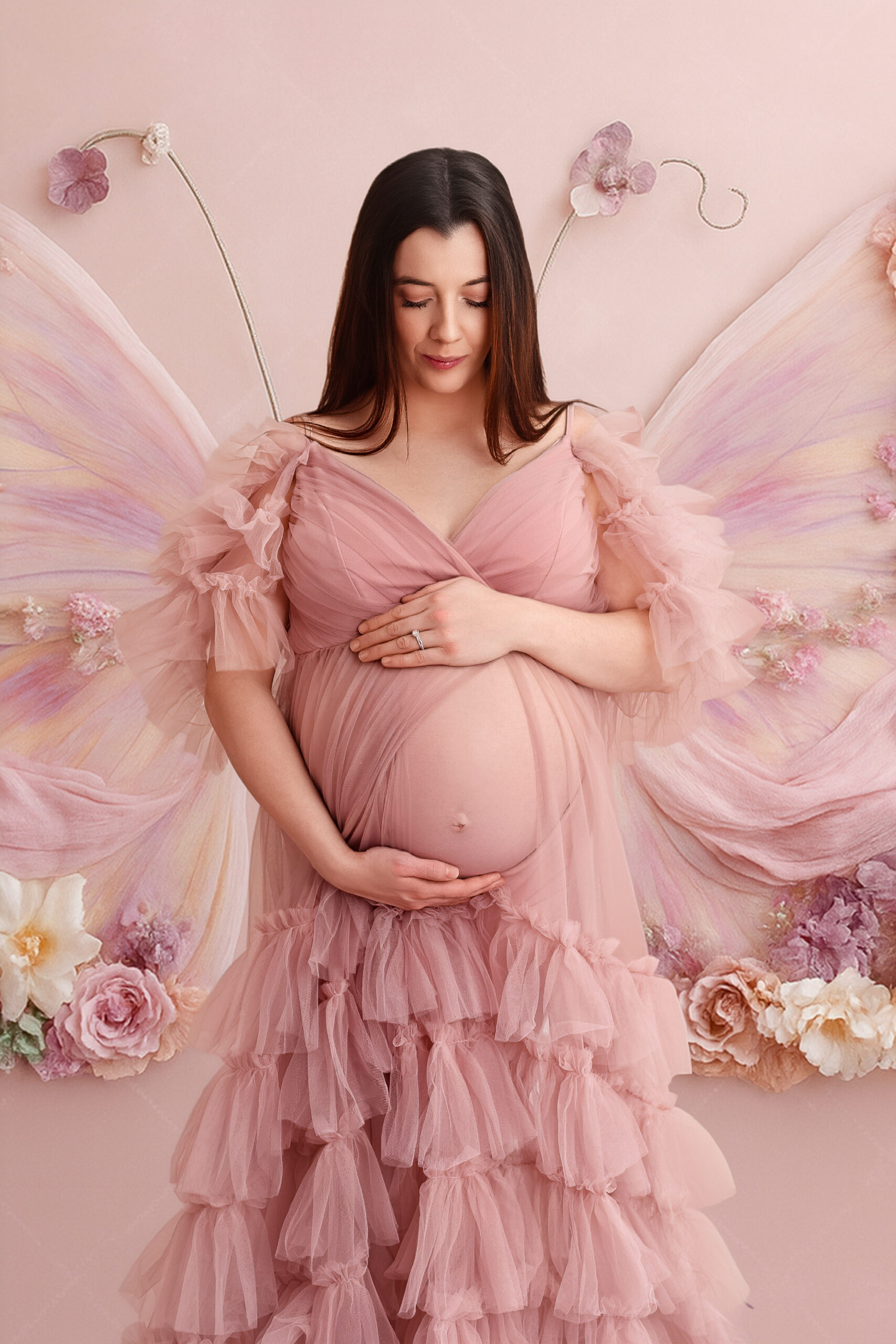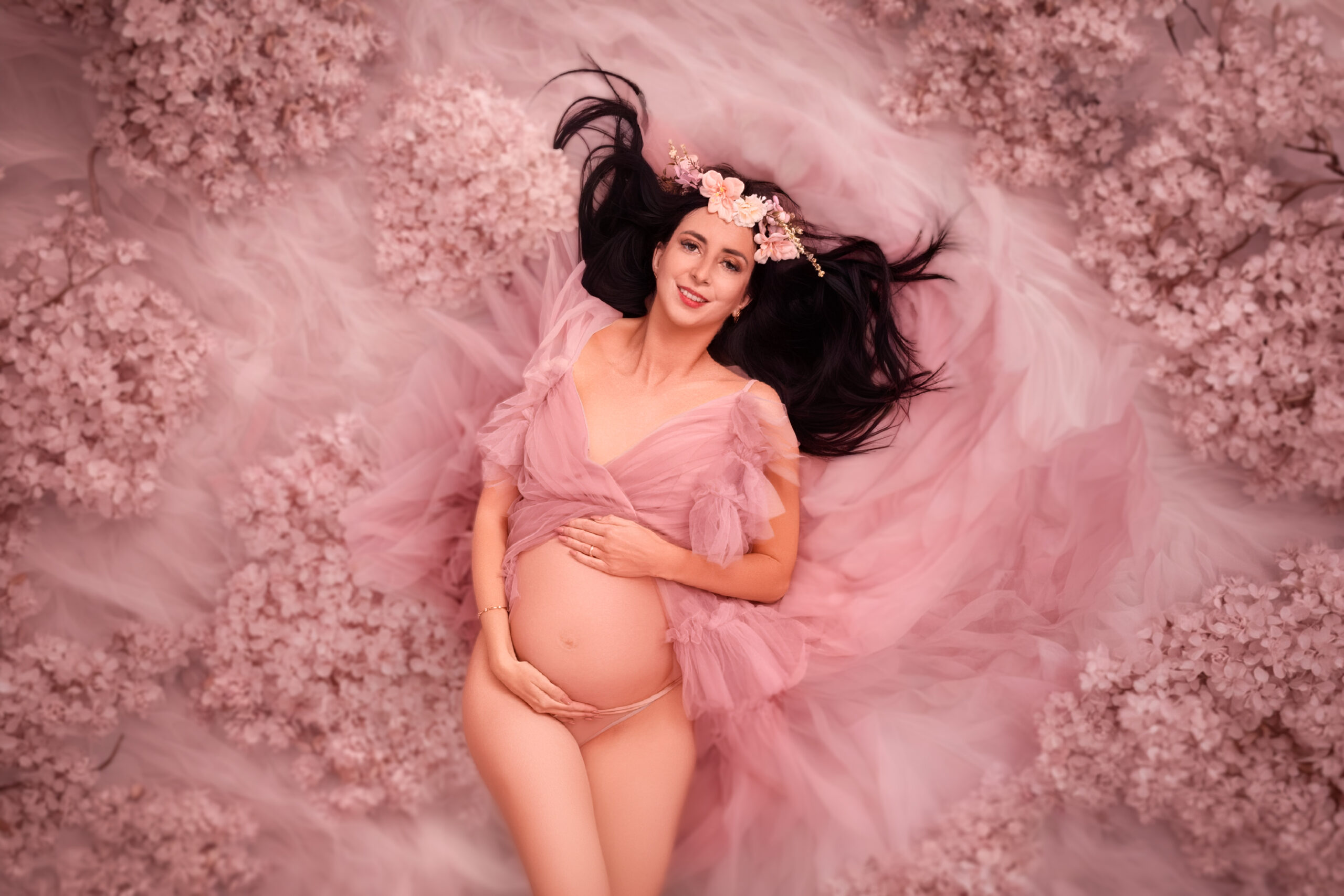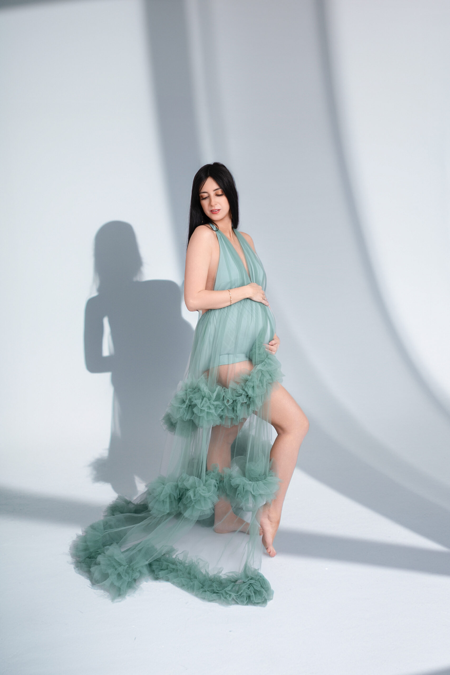 Photos en robe de grossesse, drapés ou effets créatifs comme des voiles flottants