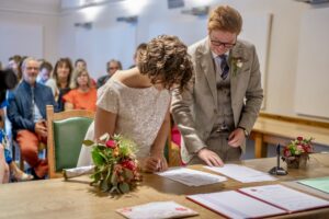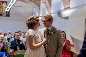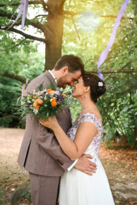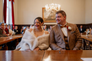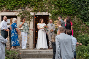Nous sommes présents pendant la cérémonie pour capturer chaque instant significatif : les échanges de vœux, l’échange des alliances et le premier baiser en tant que mari et femme.