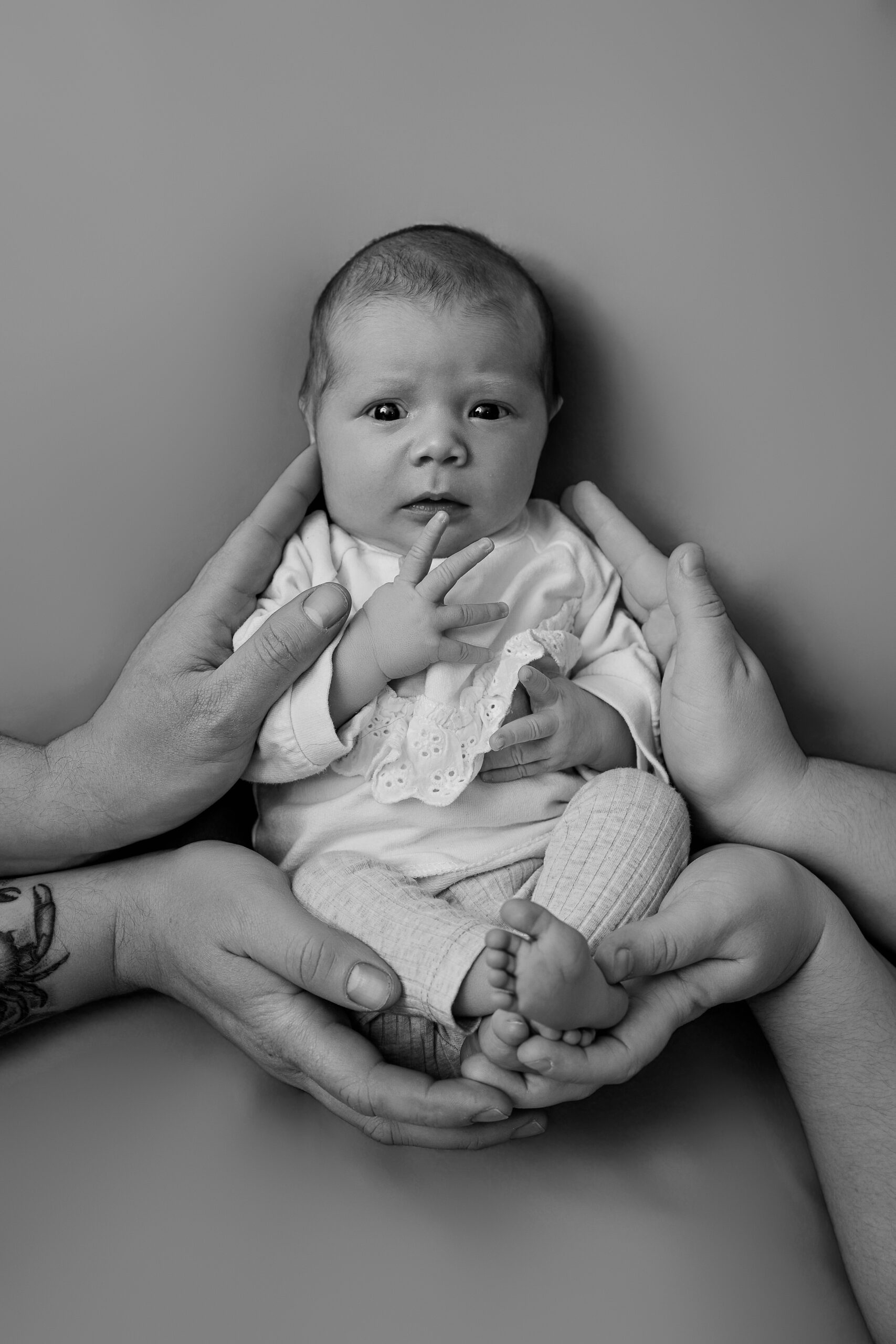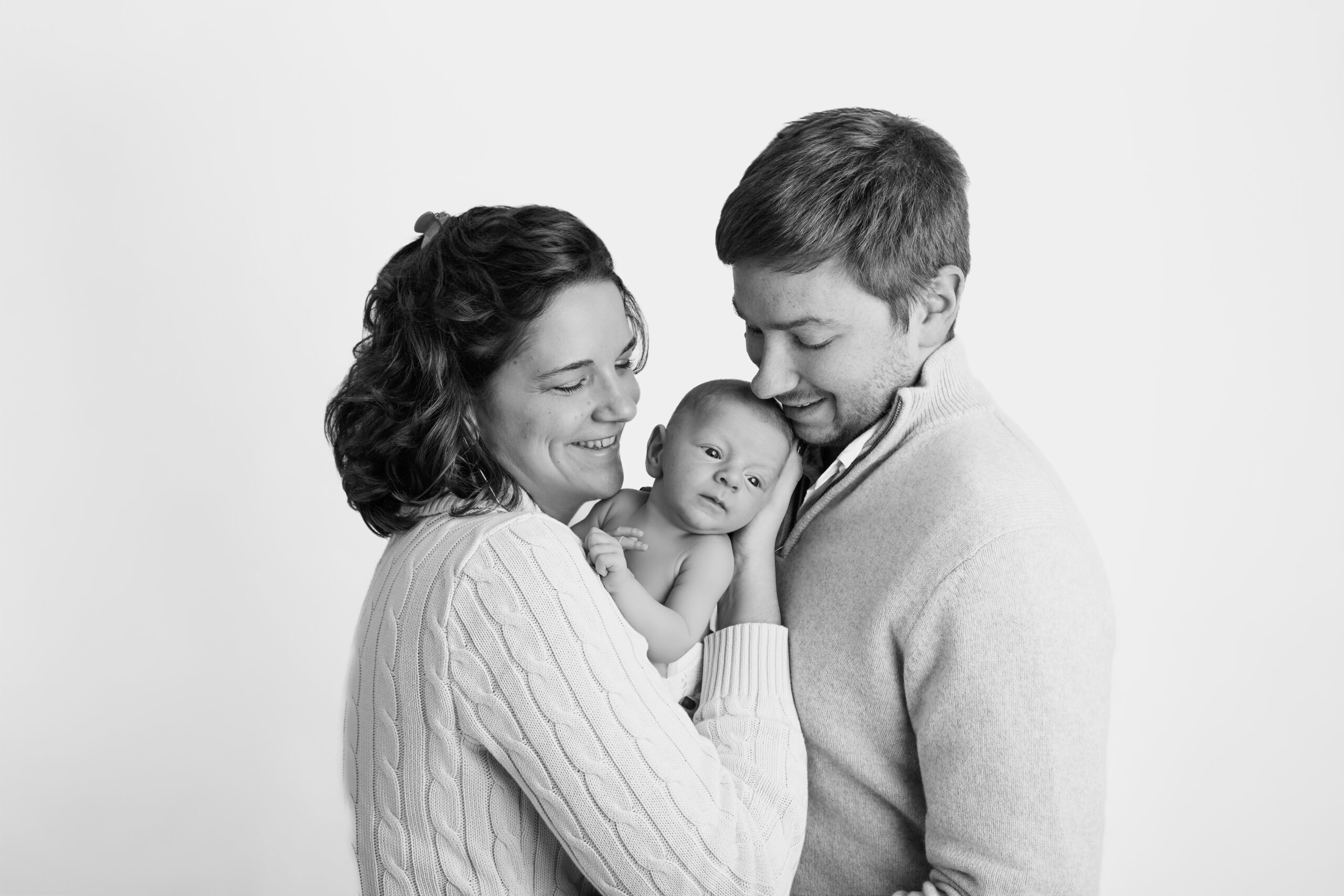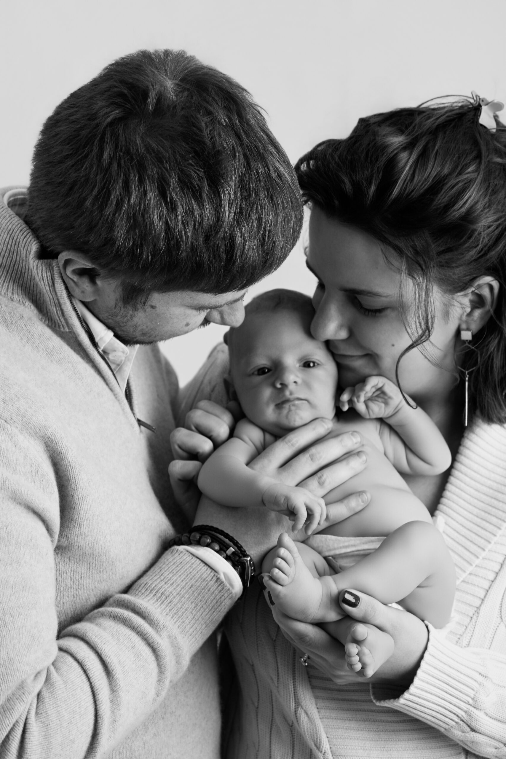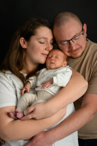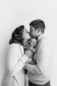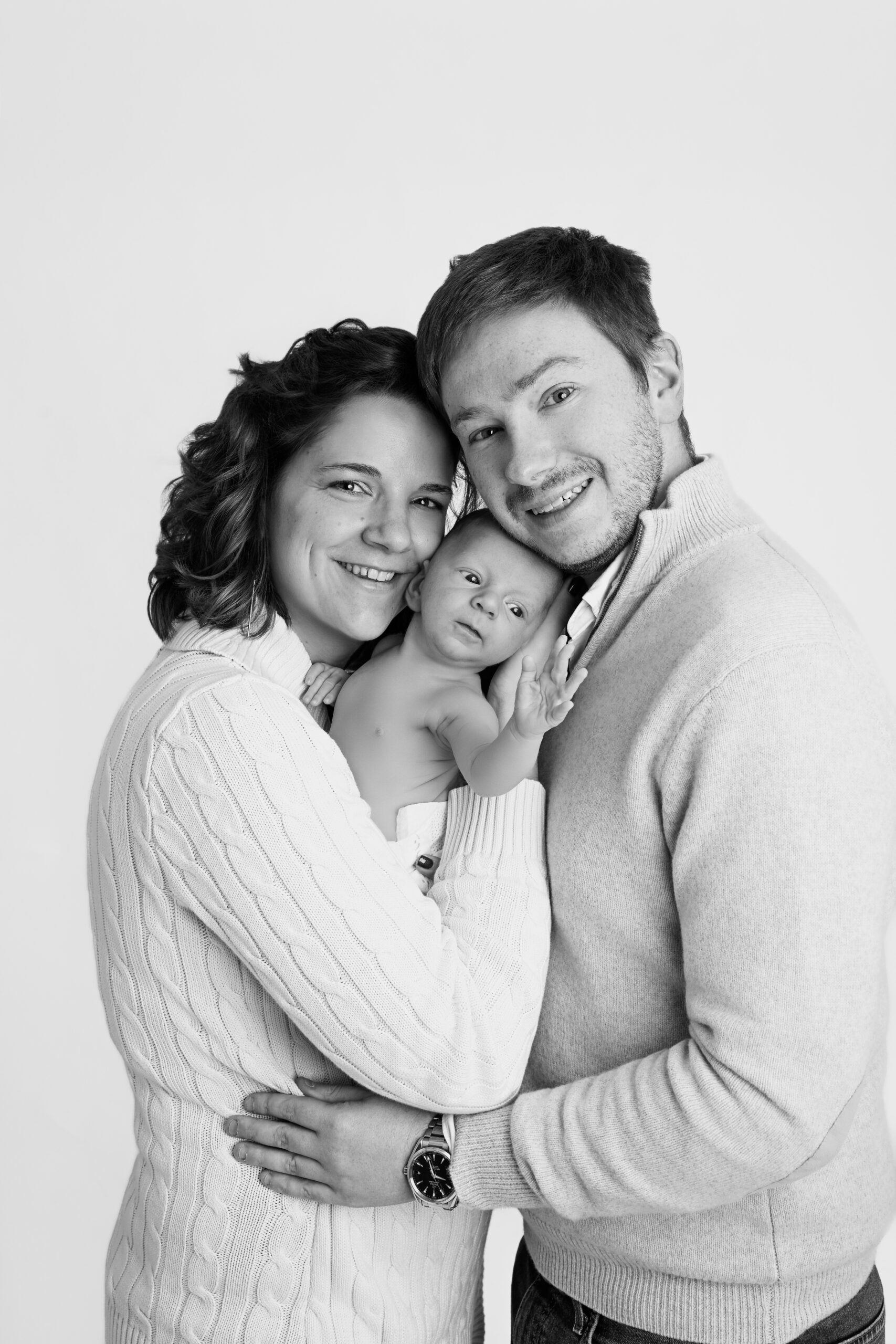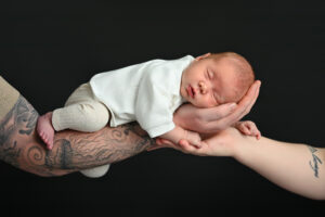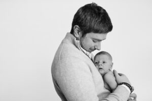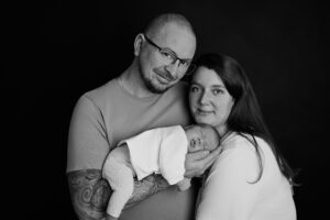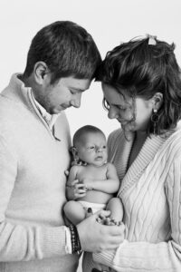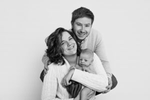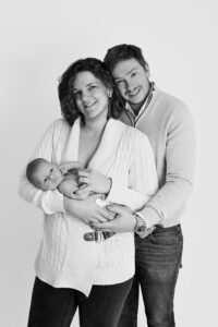 Si bébé est déjà plus grand ou moins à l’aise, il peut être plus confortable de reporter la séance vers trois mois. Les images seront différentes, mais tout aussi belles, avec de jolis sourires, plus d’expressions et une belle interaction avec les parents.