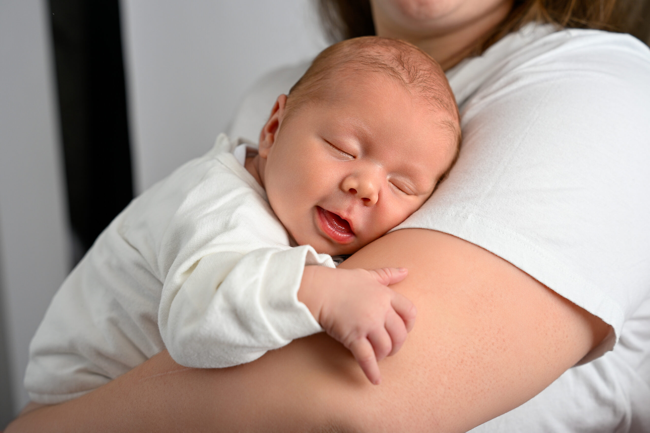 Lorsque la séance est programmée plus tard, autour d’un mois ou d’un mois et demi, les bébés commencent souvent à avoir des inconforts digestifs comme les coliques ou le reflux, dorment moins profondément et pleurent plus facilement. Pour une séance courte de 45 minutes, cela laisse très peu de marge : si bébé doit être réconforté, la séance peut passer très vite et nous ne pouvons pas toujours la prolonger, d’autres familles étant prévues après vous. Dans ces conditions, nous faisons toujours de notre mieux, mais nous ne pouvons pas garantir le résultat final ni la variété des photos.